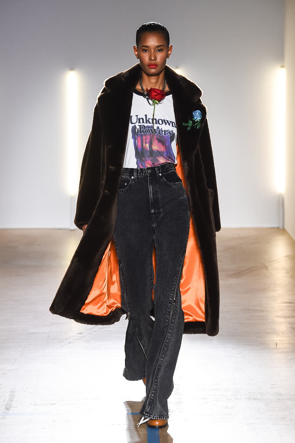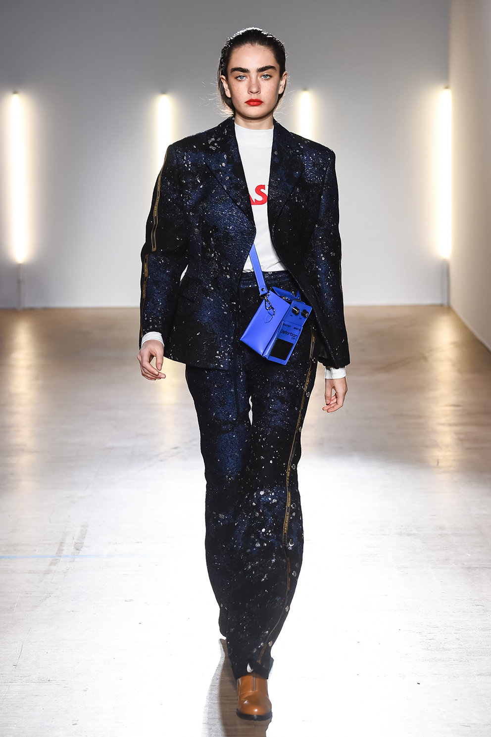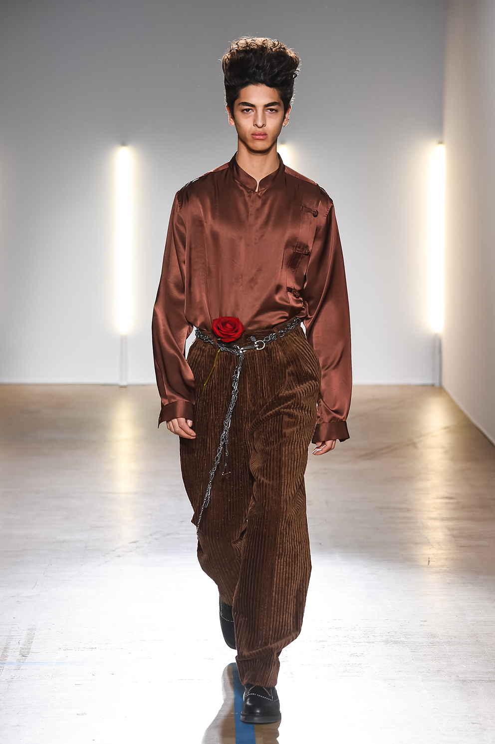 Les formes de pantalon en twill de la marque Dickies sont retravaillées dans des versions larges à taille haute et aux constructions décalées, reprenant cette intrigante idée d’une élégance sombre et perturbée qui caractérise la collection Christian Dada Automne-Hiver 2018.