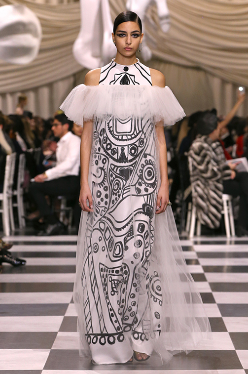 For artistic director Maria Grazia Chiuri, haute couture embodies the dream of fashion. It is a place where it is possible to evolve freely to experiment with techniques, materials and forms. Immersing herself in the heart of the surrealist movement allowed her to bring an imaginative breath to this couture-spring-summer 2018 collection, for a change of scenery and a permanent optical reversal.