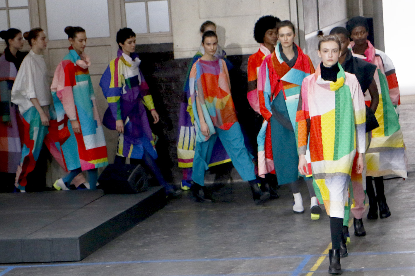 Issey Miyake, presented his new fall winter 2019/20 collection in Paris. A collection with bright and contrasting colors with graphic prints and patchwork. There were a lot of striking contrasts and shades of neon highlighting the rest.