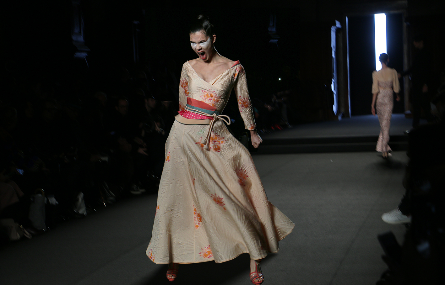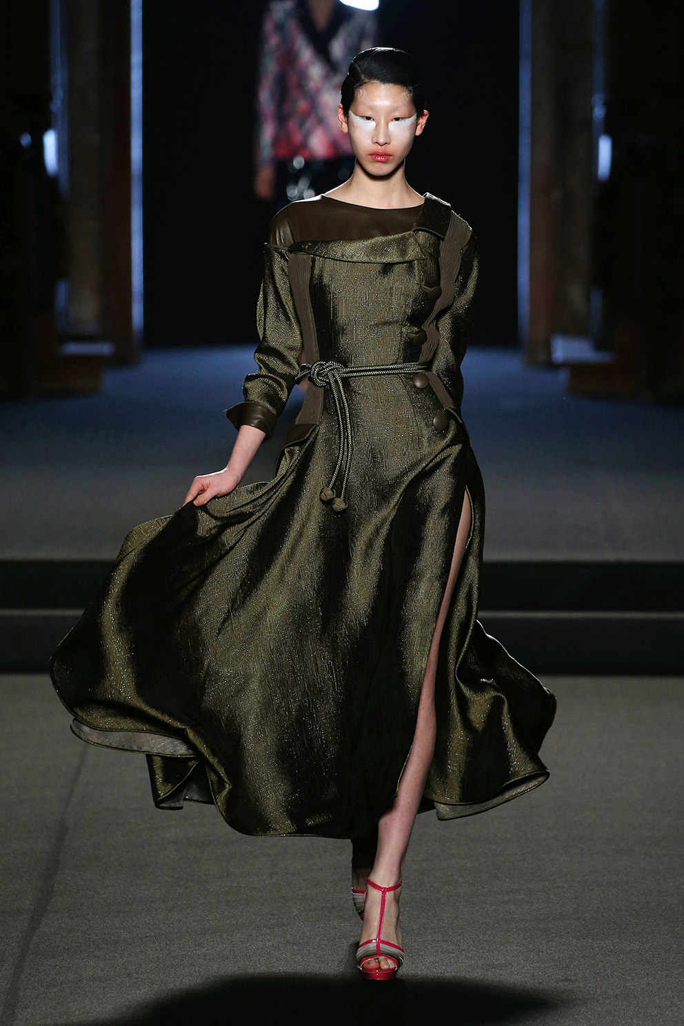 Une collection inspirée des héroïnes asiatiques qui peuplent l’imaginaire du créateur. Qu’elles soient personnages d’anime, impératrices, épouses, danseuses, protagonistes des films de Zhang Yimou, de Chen Kaïge ou des romans de Yasunari Kawabata, leur retenue signe leur élégance.