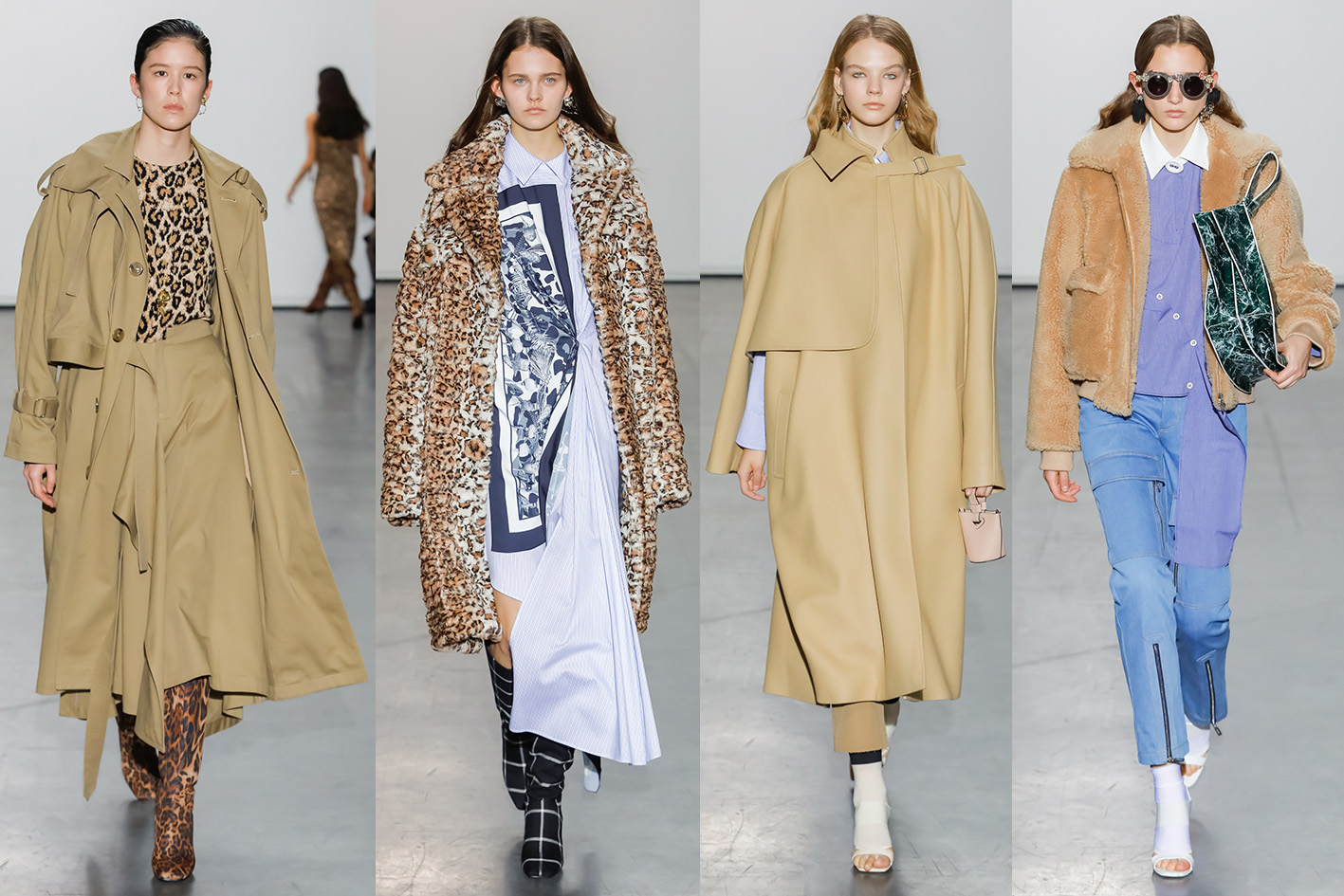 The collection examines and looks at the world from a new perspective. Fuchsia silks, jade Azalea printed knits and leopard print fake fur come together to create a surreal but life-like scene. The fabrics used in some of the outerwear pieces are made from recycled plastic bottles, using the ‘REPREVE’ technology.