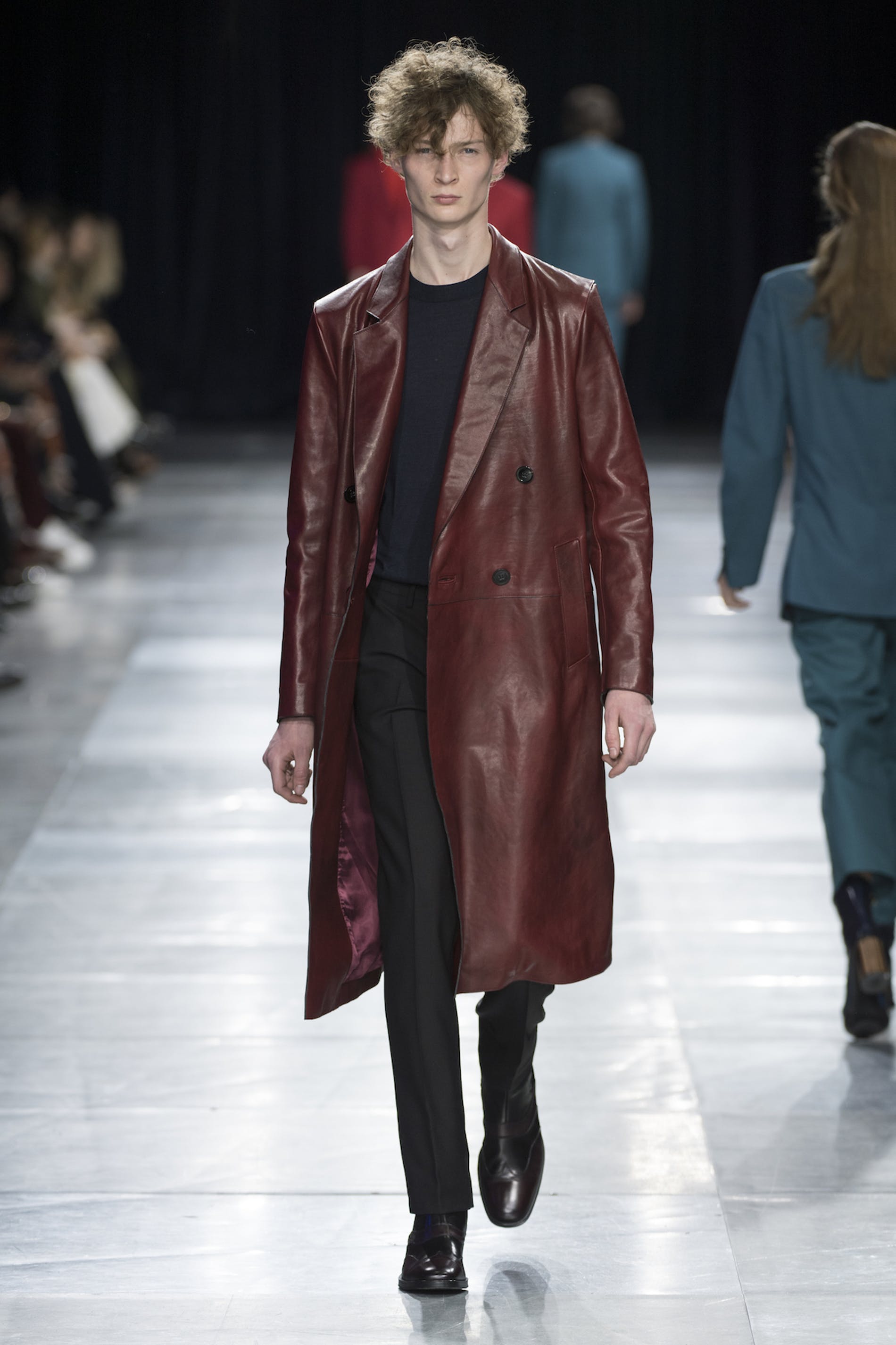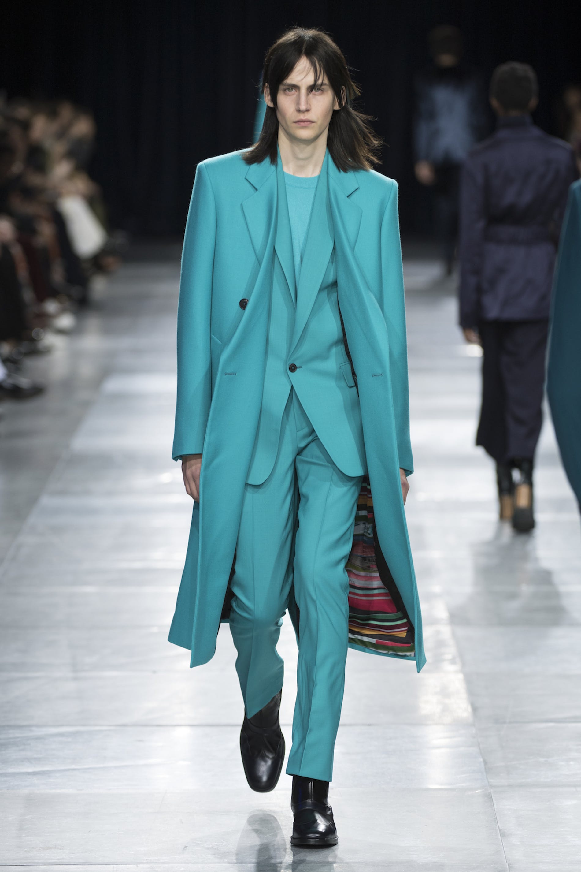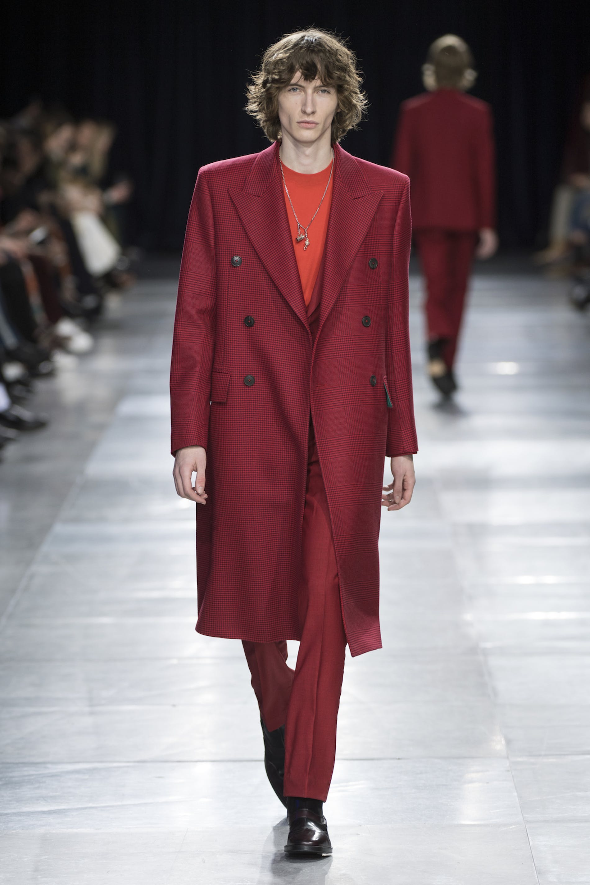 De superbes costumes parfaitement taillés sont présentés à la fois chez les hommes et les femmes. Les manteaux colorblock donnent la répliques aux cuirs et cachemires unis. Les blazers, légèrement plus longs que d’ordinaire, nous rappellent les costumes des années 80 créés par Paul, lorsqu’il voulait donner à cette pièce formelle une allure décontractée.