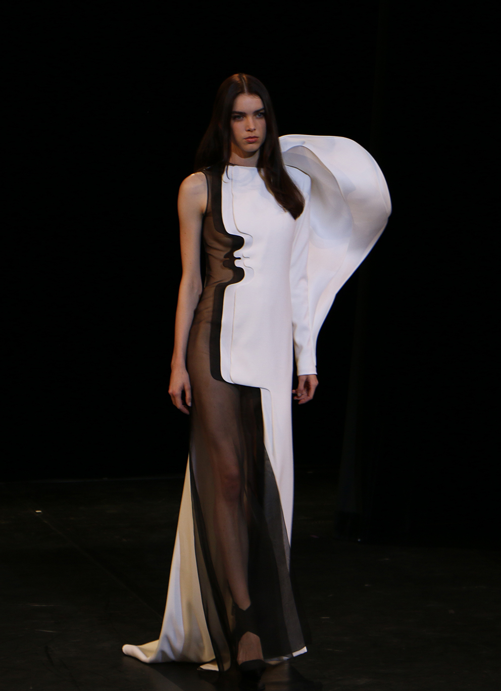 Stéphane Rolland presented his new haute couture collection, Autumn-Winter 2017-2018 at the Opéra Bastille in Paris. The designer celebrated his ten years of creations, presenting a collection, bore the unknown footprint of Rolland, with the timeless dichotomy of black and white always in the background.