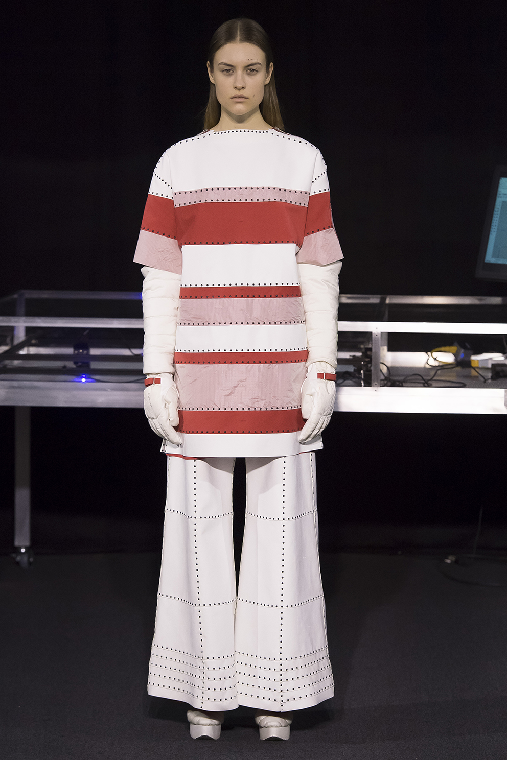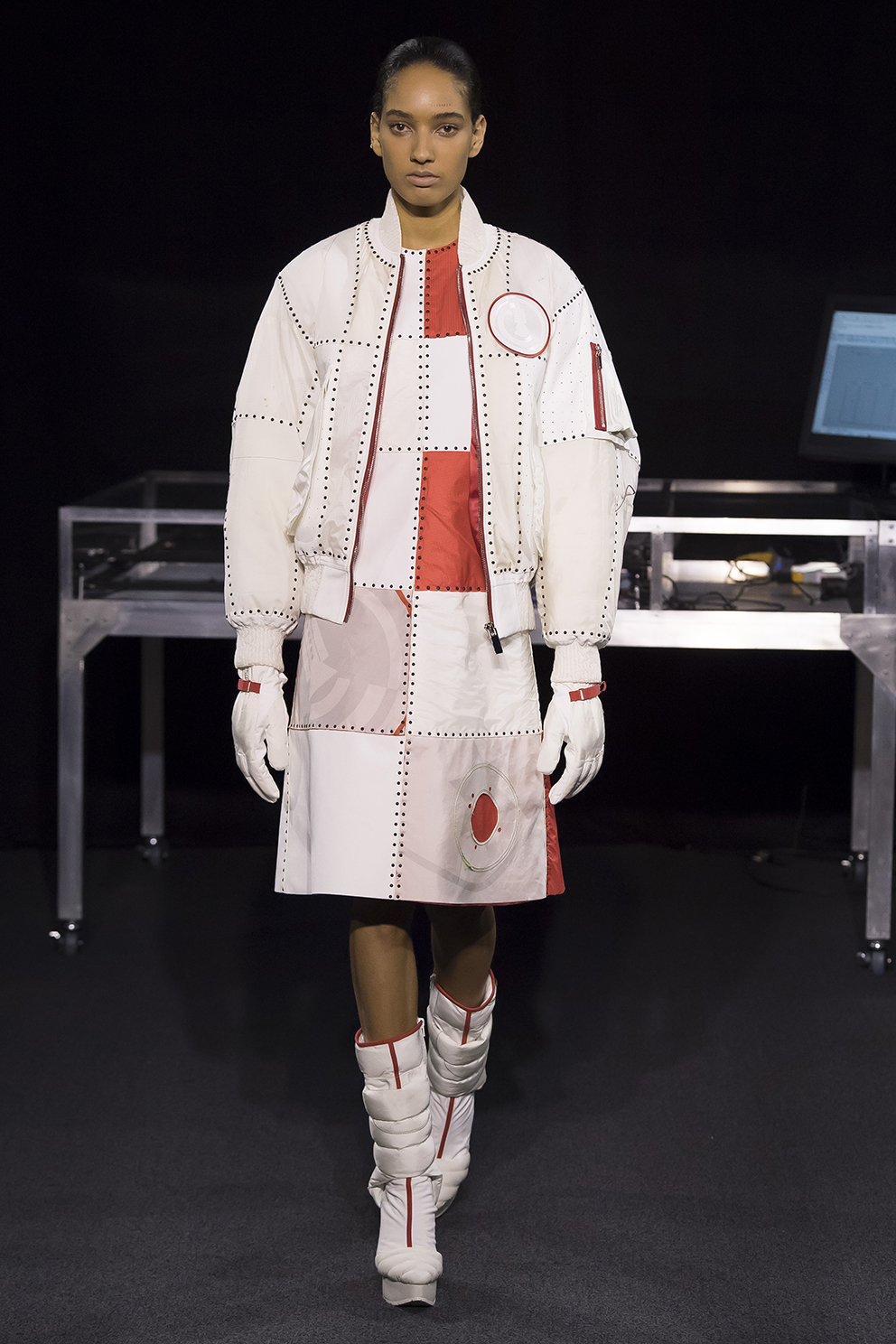 Cette vision futuriste de l’espace extra-atmosphérique. Au fil du temps, l’humanité a rêvé d’un monde au-delà du leur. Symbolisé par les Armstrong marquant les premières empreintes des humains sur la lune et 2001 de Kubrick. Finalement, il y aura un moment où les humains vivent une vie en dehors des limites de cette Terre. Comment nous nous habillons. Nous serons comment nous représentons les humains dans l’espace. L’avenir de la mode est le futur de nous, les humains, a déclaré Yuima Nakazato.