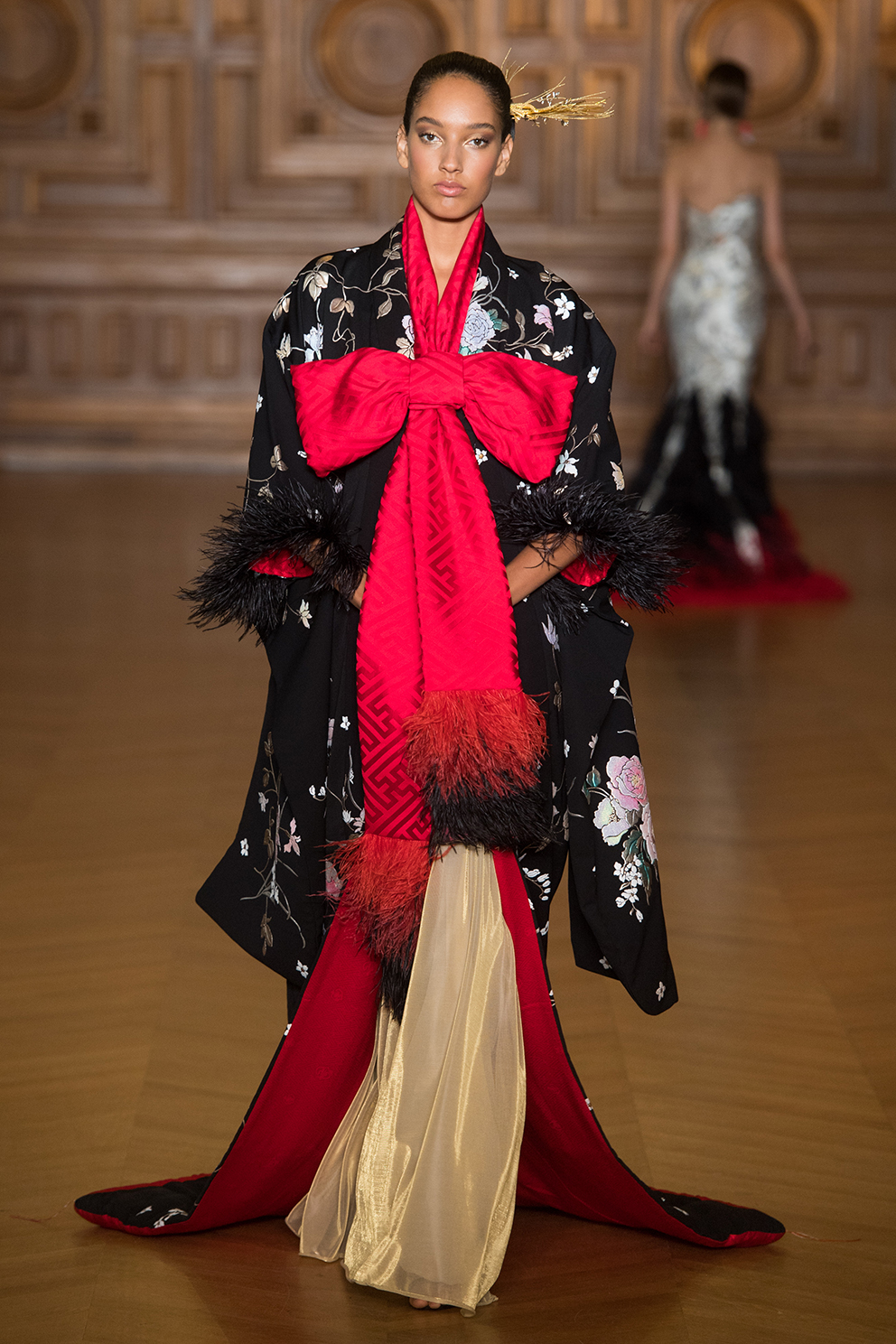 Yumi Katsura a présenté sa nouvelle collection couture « L’éveil de la nature », automne-hiver 2017-2018 à Paris. Une collection inspirée de deux artistes japonais Kiitsu Suzuki et Sotatsu Tawaraya, valorisant les métiers d’art japonais. L’amour de la tradition et le modernisme se confondront sans compromis.